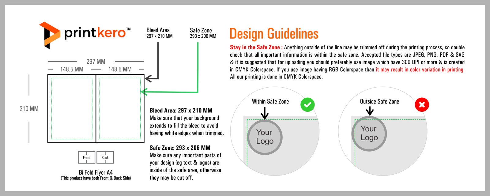 • Full Bleed Size: w:210mm X h:297mm (The space which will be bring to a halt once the identity card is written and impede to the finished size)